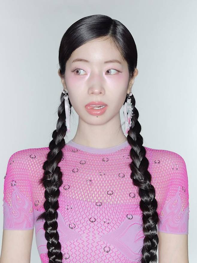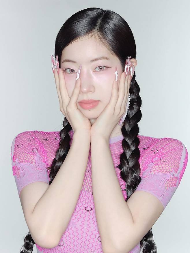 사진 속 다현은 메쉬 소재의 핫핑크 드레스와 디테일한 장식이 돋보이는 룩을 착용했다. 하트 모티브의 볼드한 귀걸이와 양갈래로 땋은 헤어스타일, 엣지있는 네일 아트까지 키치한 감성이 녹아든 컷이다.