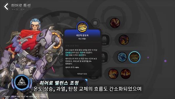 전쟁 광인: 기동 모드와 섬멸 모드의 구분이 사라지고 온도 상승, 과열, 탄창 교체의 흐름이 간소화됐다. 적온 상태의 진입 조건과 효과도 딜링 연계에 맞춰 수정됐다.