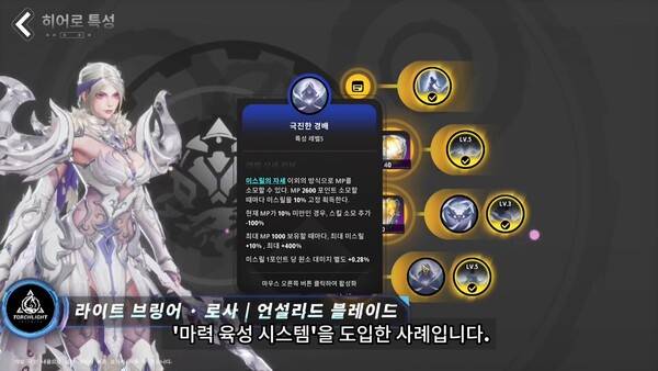 언설리드 블레이드는 공격 빌드 최초로 마력 육성 시스템을 도입한 사례다. 로사는 마력 육성을 통해 공격 속성 피해를 대폭 강화할 수 있다. 공격 스킬을 사용할 때마다 미스릴 수치가 축적되며 그에 따라 로사를 중심으로 미스릴의 정토가 펼쳐진다.