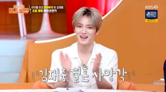 김재중은 "가장 이상적인 건 한 다섯은 낳는 거다"고 했다. 이 얘기를 들은 붐은 "이거 방송 나가면 진짜 결혼 사망 선고"라고 해 웃음을 자아냈다.