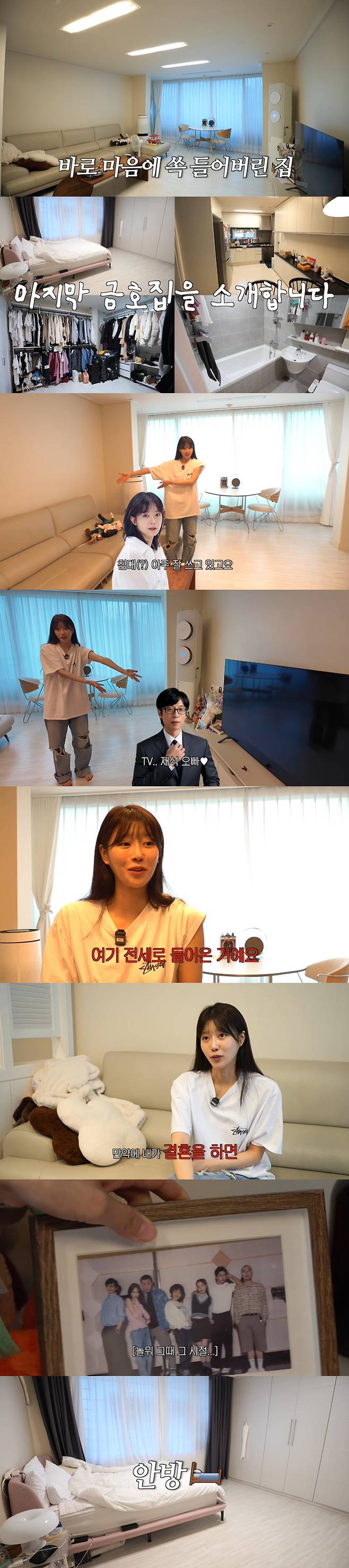 먼저 심플한 거실을 소개하던 미주는 "이사 올 때가 tvN '식스센스' 한 창 할 때였다. 이사 온다고 언니 오빠들께서 선물해주셨다. 소민 언니가 소파, TV는 재석 오빠가 선물해주셨다. 너무 잘 쓰고 있다"며 감사의 인사를 건넸다.