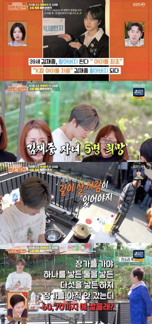 11일 방송된 KBS 2TV 예능 '신상출시 편스토랑'(이하 '편스토랑')에서는 9남매 막내아들 김재중이 2세 계획을 밝히는 모습이 그려졌다.