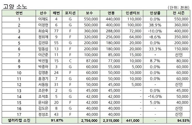 [연봉이야기⑧] ‘소진율 91.87%’ 소노, 허훈보다 빠른 이정현의 보수 5억