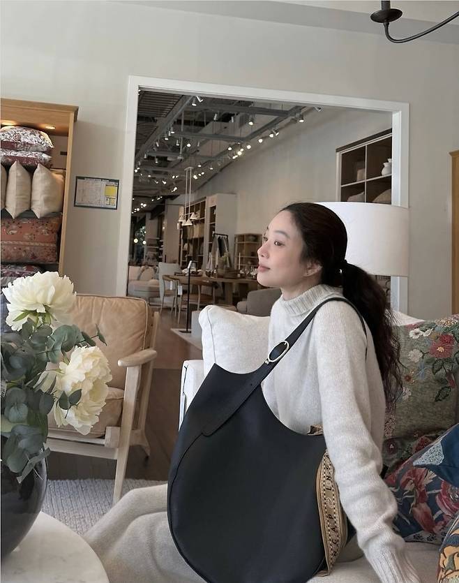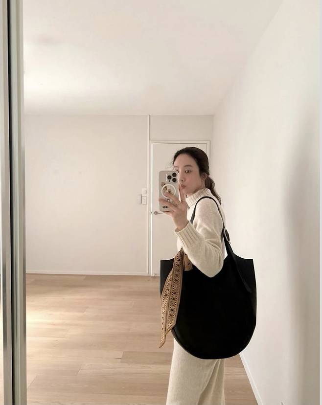 정려원, 빈 방에서도 감성 채웠다…니트 원피스+오버백의 정려원표 미니멀 무드