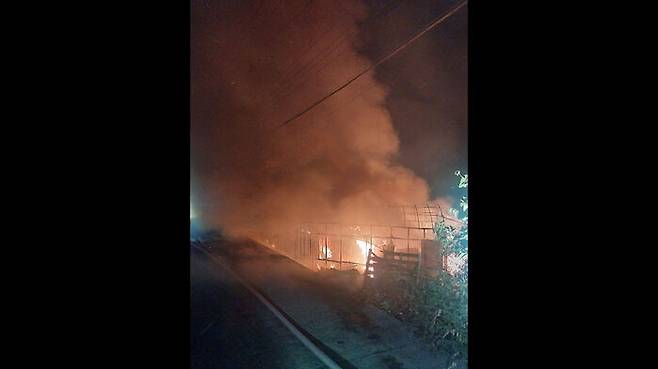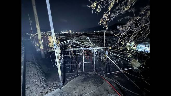 오늘(12일) 새벽 2시 반쯤 경남 김해 불암동의 비닐하우스에서 불이 나 사람이 사는 컨테이너까지 전부 불에 타는 사고가 났습니다.