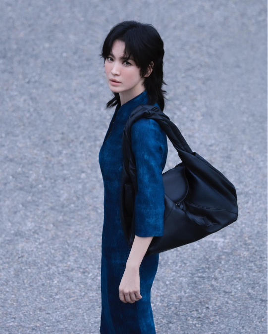 가방은 송혜교의 새로운 연기를 암시하듯 묵직한 실루엣을 드러냈다. 곡선적인 쉐입의 볼륨 토트백은 그녀의 움직임에 따라 다른 감정을 만들어냈고,