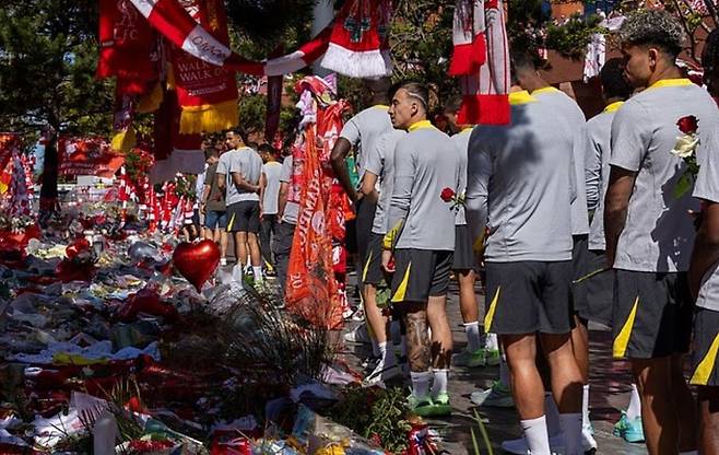 현지 보도에 따르면 11일 리버풀 선수단과 코치진은 홈구장 안필드 부근에 차려진 '헌화 밭'을 찾아 조타와 실바를 조문했다. 이 자리엔 두 형제의 가족들도 참석한 것으로 전해졌다.
