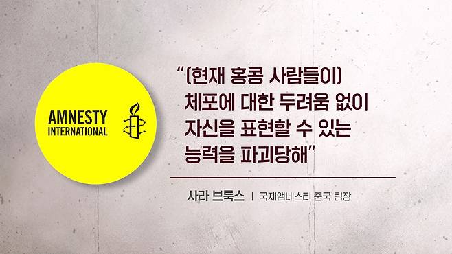 국제앰네스티의 최근 보고서에 따르면, 국가보안법에 따라 종결된 78건 사건 중에서 최소 66건이 합법적인 표현과 관련된 것으로 나타났는데요. 사라 브룩스 국제앰네스티 중국 팀장은 현재 홍콩 사람들이 "체포에 대한 두려움 없이 자신을 표현할 수 있는 능력을 파괴당했다"고 지적했습니다.