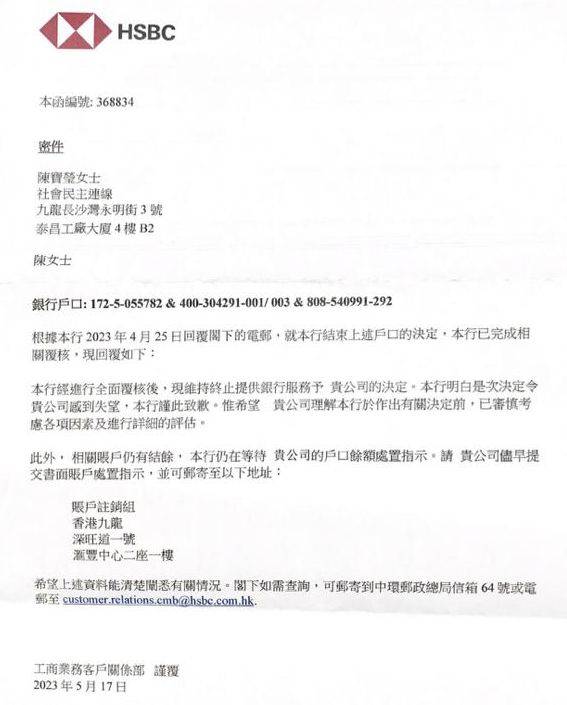 홍콩프리프레스라는 매체가 2023년 홍콩 HSBC 은행이 사회민주당연맹이 주로 지지자들로부터 기부금을 받는 데 사용하던 은행 계좌 3곳을 해지한다라는 서한을 보냈다라고 보도를 했습니다. HSBC는 그 결정에 대해서 어떤 이유에서인지는 따로 밝히진 않았거든요. 이러한 여러 이유들 때문에 사실상 야당들이 더 이상 버틸 수가 없는 그런 상황에 직면하게 된 것 아닌가 생각합니다.