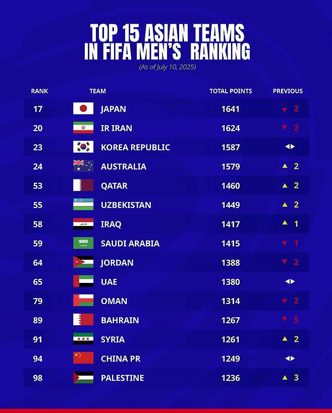 AFC가 주장하는 6월 랭킹은 FIFA 랭킹 계산법에 따라 AFC가 FIFA에 문의해서 AFC 회원국들로만 순위를 매긴 셈이다. FIFA가 공식 발표한 랭킹은 아니다.