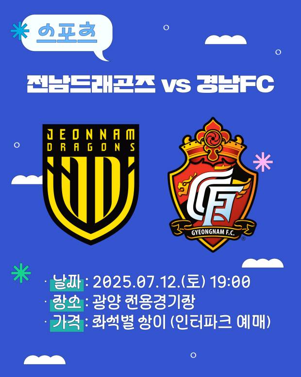 ✅스포츠 - 축구 : 전남드래곤즈VS경남FC|광양 전용경기장|07.12.(토) 19:00