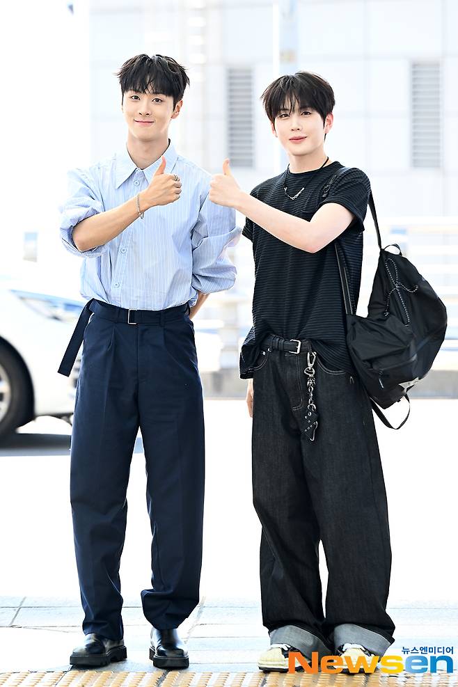 BAE173 멤버 유준, 영서가 7월 12일 오후 인천 중구 운서동 인천국제공항 제 1여객터미널을 통해 해외 일정 참석 차 중국 항저우로 출국하고 있다.