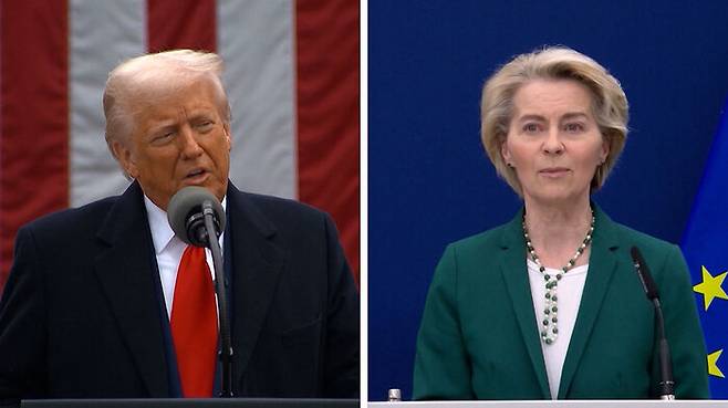 ▲ 트럼프 미국 대통령과 폰데어라이엔 EU 집행위원장(오른쪽)