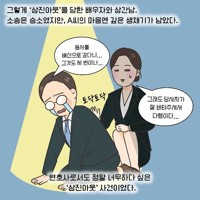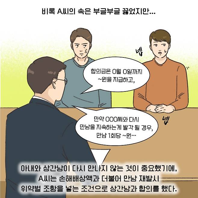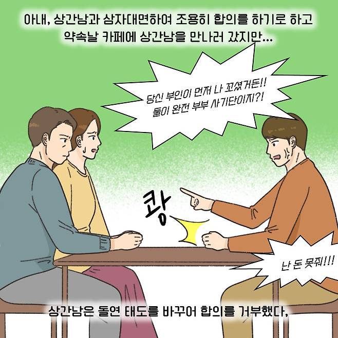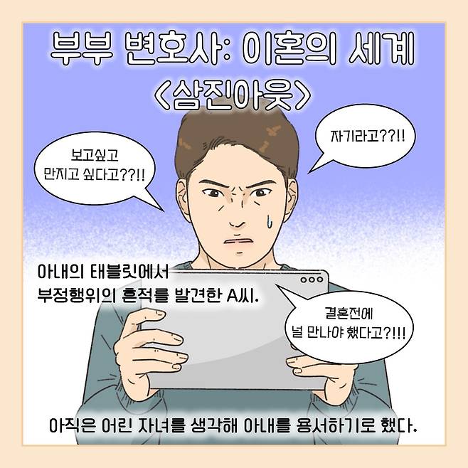 (※이 기사는 이혼 소송 과정에서 필요한 법률 지식을 웹툰 형식으로 이해하기 쉽게 제공할 목적으로 제작됐습니다. 실제 사례를 각색한 내용으로 언급되는 이름과 지명 등이 실제와 같은 경우가 있더라도 이는 우연에 의한 것임을 밝힙니다.)