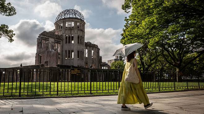 ▲ 일본 히로시마에서 한 여성이 원폭 돔 앞을 지나가고 있다.