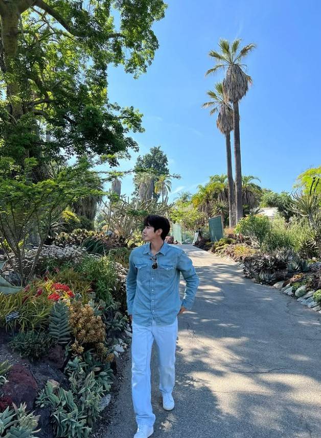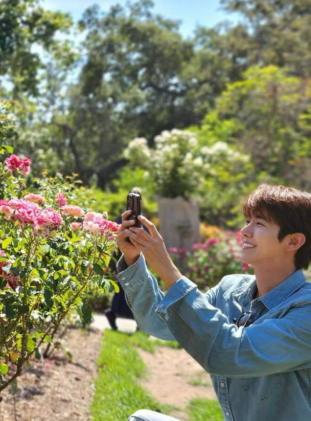 스마트폰을 들고 꽃을 찍고있는 모습에서는 셔츠의 한쪽 소매를 자연스럽게 걷어냈다. 부드러운 미소와와 함께 캐주얼한 분위기를 자아내는 그의 스타일은 패셔너블하면서도 편안한 여름 패션을 완성했다. 이에 팬들은 "너무 이쁘고 좋아요" "항상 응원해요" "행복해 보여서 좋아요" 등의 반응을 보였다.