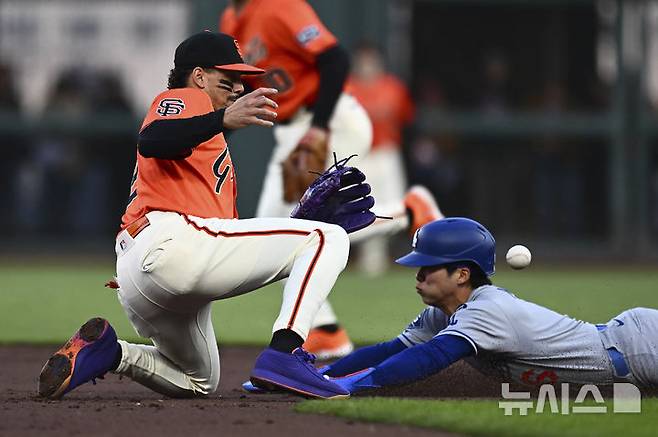[샌프란시스코=AP/뉴시스] LA 다저스 2루수 김혜성이 11일(현지 시간) 미 캘리포니아주 샌프란시스코 오라클 파크에서 열린 2025 메이저리그 샌프란시스코 자이언츠와의 경기 3회 초 우전 안타 후 2루로 도루하고 있다. 김혜성은 오타니 쇼헤이의 2점 홈런(시즌 32호)으로 홈을 밟았다. 2025.07.12.