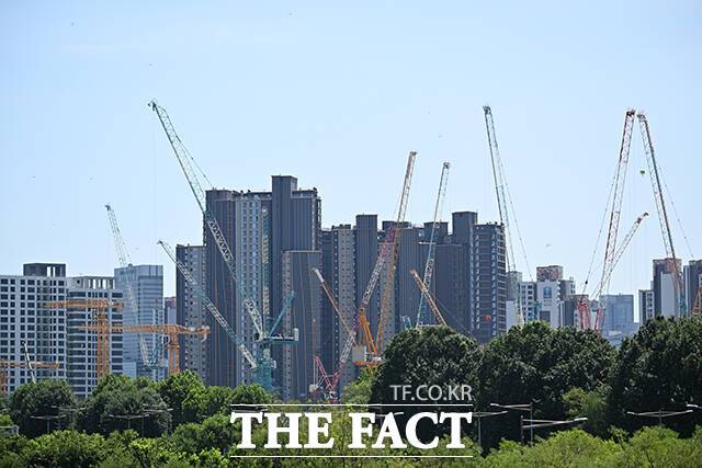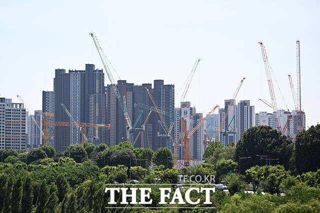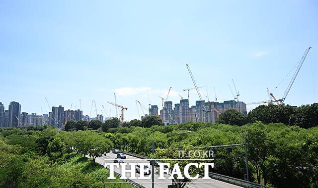 [더팩트ㅣ박헌우 기자] 한강변 대단지로 '단군이래 최대 재건축'으로 불리는 서울 서초구 반포주공아파트 1단지 일대가 12일 오후 수십 대의 크레인이 들어서는 등 분주한 모습을 보이고 있다.