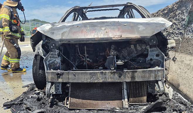 불은 출동한 소방 당국에 의해 23분 만에 완전히 꺼졌지만, 차체 대부분이 불에 타고 안에 있던 운전자도 숨진 채 발견됐습니다.
