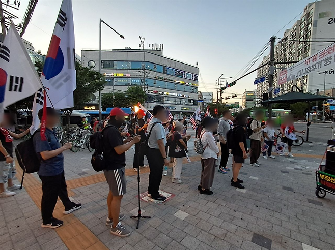 한 유튜버는 "이 정도 모였으면 성공이다. 한줌이 아니다"라며 "여기는 중국 공산당 지시받는 주민들이 사는 곳이니 조심하자"라며 행진을 시작했다. 그러면서 혐오 내용이 담긴 노래를 제창했다.