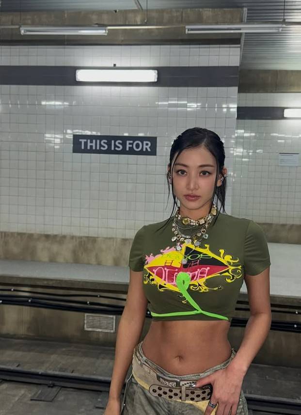 그룹 트와이스(TWICE) 지효가 지하철 플랫폼 위에서 카리스마 넘치는 Y2K 스타일로 시선을 사로잡았다.