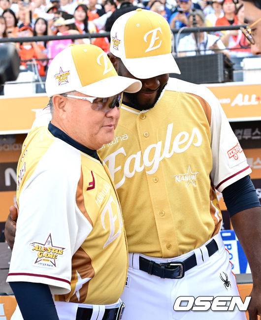 한화 김경문 감독, '올스타전 나선 플로리얼과 인사 나누며' [사진]