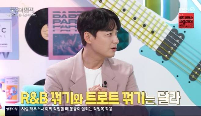 이지훈은 "저도 오디션 준비하면서 황민호, 이수연 선배님 노래를 많이 들었다. 옆에 앉아 계신 게 너무 신기하다"라며 너스레를 떨었다. 이지훈은 트로트로 전향할 때 어려운 점에 대해 "꺾는 게 힘들긴 하다. R&B의 꺾기와 트로트의 꺾기는 다른 것 같다"라며 "아침마다 꺾기 모드를 다르게 탑재해야 하는데, 가끔 잘못 끼게 나오게 되면"이라며 뮤지컬 모드와 트로트 모드를 선보였다.
