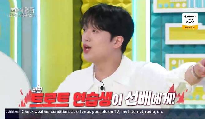 이에 이찬원은 "지금 연습생이 (선배에게)"라고 발끈한 척했고, 이지훈은 환희에게 빨리하라고 속삭이며 장단을 맞추었다.