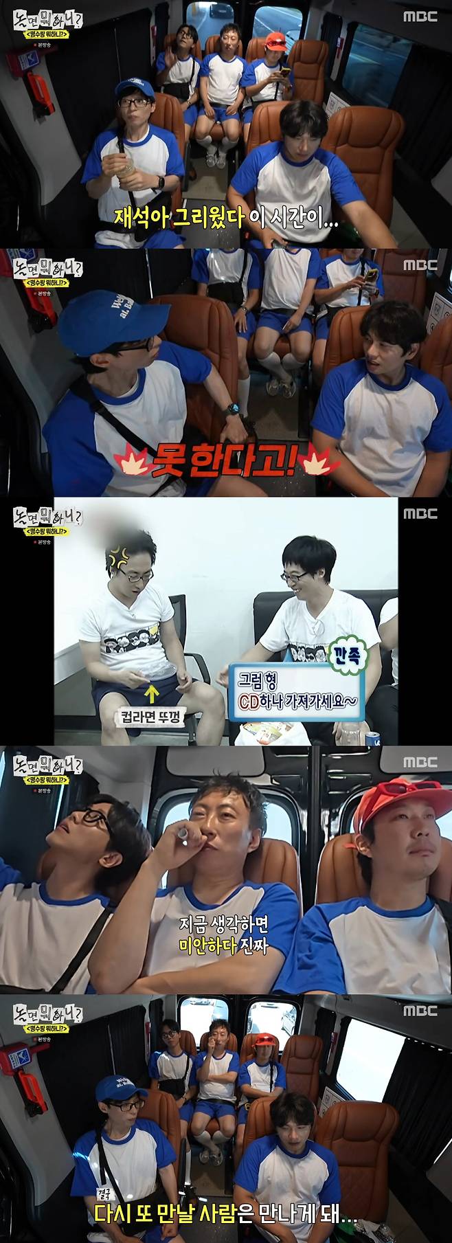 달라진 박명수의 모습에 하하는 "형 왜 그러냐"며 당황했고, 박명수는 "나 많이 변했다"고 말했다. 유재석은 "결론적으로는 다들 또 만나고 다시 이런 시간을 보내게 된다. 그게 인생이다"라며 훈훈하게 대화를 마무리했다.