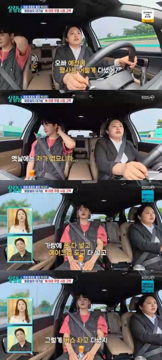 박서진은 "옛날에는 차가 없으니까 가방에 옷 넣고, 메이크업 도구 다 넣고 버스를 타고 다녔다"고 했다.