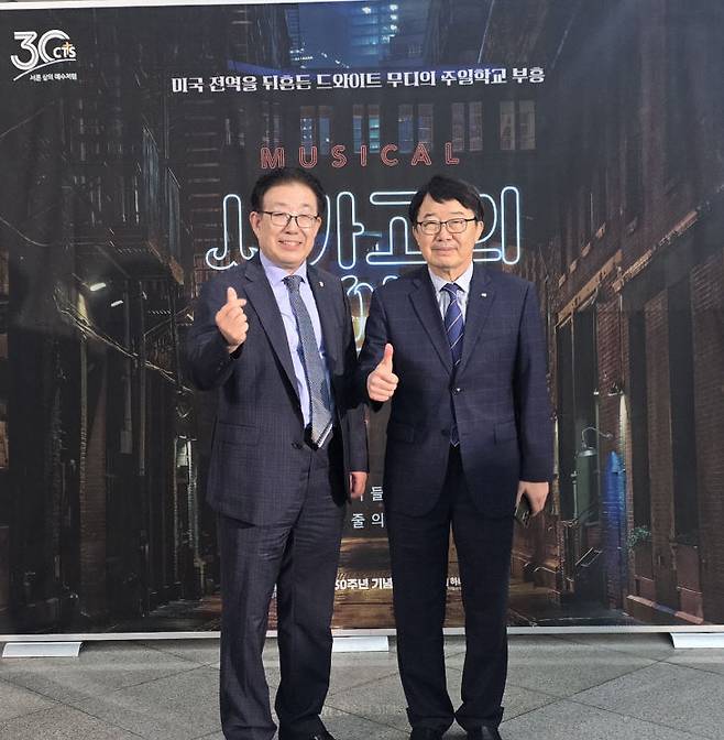 홍석산 대전시장로연합회 대표회장(그린산업 (주) 부사장)과 오종탁 CTS기독교 TV 대외협력본부장(하늘문교회 장로)이 7월12일 오후 4시 대전 하늘문교회(담임목사 홍한석)에서 무대에 올린 뮤지컬 ‘시카고의 아이들’ 공연을 성황리에 마친 뒤 이렇게 말했다.