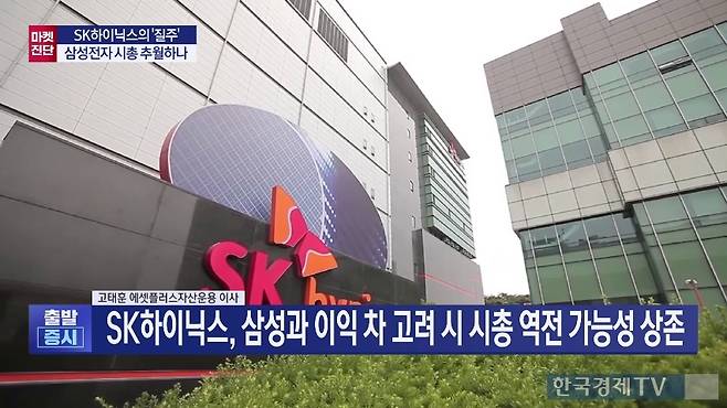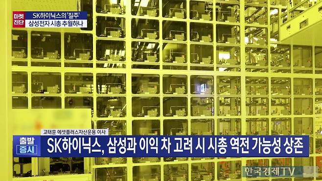 고태훈 에셋플러스자산운용 이사는 "밸류에이션과 이익을 고려했을 때 삼성전자와 SK하이닉스 시가총액이 거의 비슷한 상황"이라고 진단했다. 고 이사는 지난 11일 한국경제TV에서 SK하이닉스가 삼성전자 시총을 넘어설 수 있냐는 질문에 이 같이 말했다.