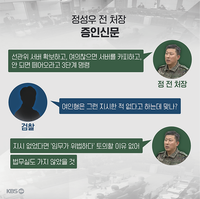 법무 검토 결과 문제가 있단 내용을 보고했지만, 정 전 처장은 여 전 사령관이 귀담아듣지 않으려 했다고 증언했습니다.