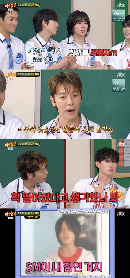 강호동은 "동해 많이 울었냐"라고 물었고, 은혁은 "사실 우리가 SM을 아예 나갔다기보다 지금처럼 같이 할 때는 같이 하는데, 동해는 아예 떨어졌다고 생각했는지 몇 달 동안 회사 주변 서성거리면서 울고 그랬다고 하더라"라고 전했다.
