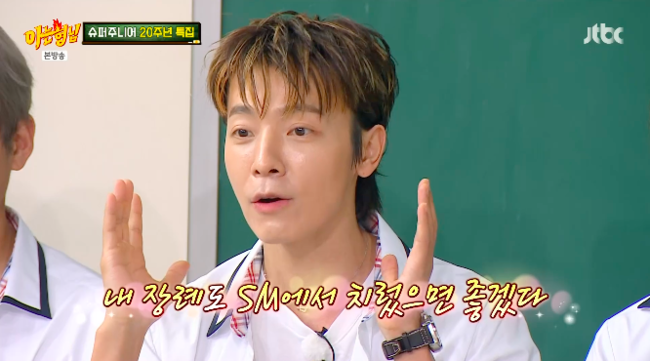 12일 방송된 JTBC 예능 ‘아는 형님’(이하 ‘아형’)에서는 데뷔 20년 차를 맞이한 자타공인 레전드 아이돌 그룹 슈퍼주니어가 출연했다.