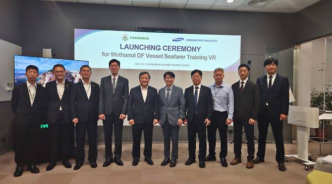 친환경 선박 수요가 급증하는 가운데 해운사들은 복잡한 신기술 장비 운용을 위한 선원 훈련의 필요성이 커지고 있다. 이에 삼성중공업은 자사 3D 설계 데이터를 활용해 엔진룸, 메탄올 연료공급장치 등 주요 설비를 가상 공간에 구현하고 비상상황 대응 훈련까지 가능한 VR 프로그램을 에버그린에 제공했다.