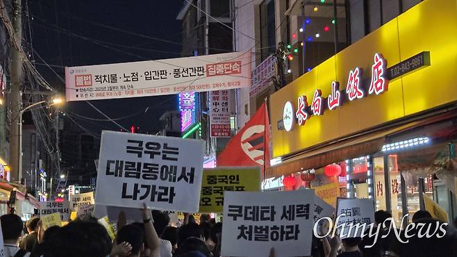11일 대림동에서는 보수 성향 유튜버를 주축으로 윤석열 복권과 '반국가 세력과 중국 공산당에 경고한다'는 목적의 집회가 열렸다. 40여 명의 참가자들은 대형 태극기와 성조기를 흔들었고 '온리 윤(ONLY YOON)', '윤 윈(YOON WIN)' 같은 문구가 적힌 물품을 소지했다. 참가자들은 "중국 공산당에 충성할 거면 중국으로 빨리 꺼져라", "선거개입 중단하라", "짱깨"라고 외쳤다.