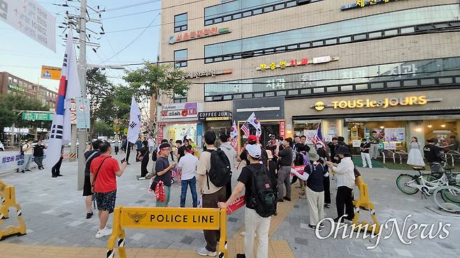 일부 참가자들은 집회 근처에 서 있던 주민들을 향해 "왜 여기 모여 있냐"고 위협적인 행동을 가하기도 했다. 또한 현장에 나온 기자들에게 소속을 묻더니 <오마이뉴스> 취재진을 에워싸고 "여기서 당장 나가라"고 고함을 지르며 얼굴을 촬영하는 등 폭력적인 모습을 보였다. 경찰 제지 하에 현장을 벗어날 때까지 폭언을 반복했다.