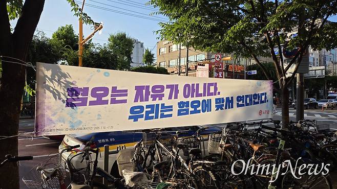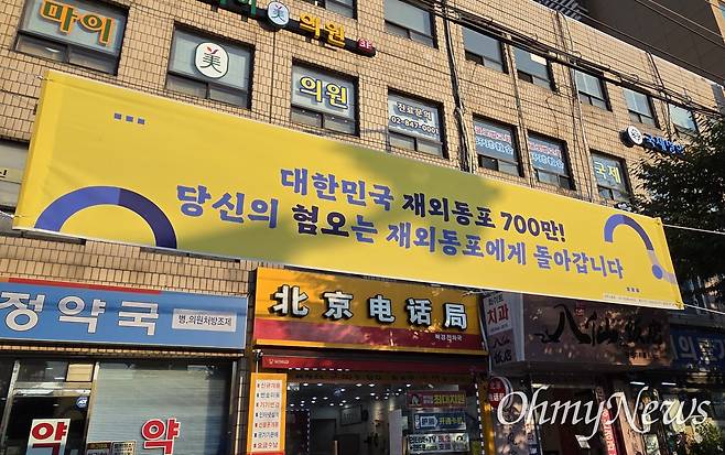 | ▲ 11일 오후 7시 30분 대림역 인근에서는 여러 시민단체들이 "극우세력 물러가고 중국 동포도 우리 이웃"이라고 집회를 열었다. 거리에는 '혐오는 자유가 아니다', '당신의 혐오는 재외동포에게 돌아간다' 등 현수막이 걸렸다. |