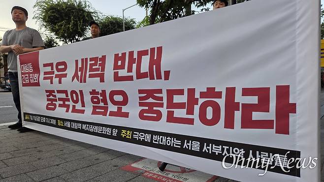 '혐중' 시위에 맞선 시민단체들..."극우는 대림동에서 나가라"