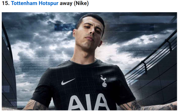 아울러 팬들로부터 좋은 평가를 받은 올 블랙 디자인의 어웨이 유니폼도 15등으로 부진했다. 매체는 “홈 유니폼보다는 약간 더 흥미롭지만, 그다지 큰 차이는 아니다”라고 밝혔다.