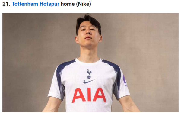 토트넘이 혹평을 면치 못했다. 특히 홈 유니폼은 21개 중 21등, 즉 꼴찌를 기록했다. 매체는 토트넘의 홈 유니폼에 대해 “최근 몇 년간 토트넘은 거의 구분이 안 될 정도로 밋밋하고 진부한 홈 유니폼을 반복해서 내놨다. 이번 유니폼 역시 그 지루한 계보를 잇는 결과물로, 경기복이라기보다는 훈련복에 더 가까운 모습”이라고 평가했다.