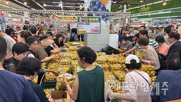 13일 제주농협(본부장 고우일)에 따르면 지난 11일 서울 홈플러스 강서점과 하나로마트 양재점을 방문해 '온 국민 자연비타민 C, 하우스감귤 하루에 하나'라는 슬로건으로 '하·하·하 페스티벌' 기념행사를 추진했다.