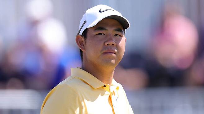 ▲ 제네시스 스코티시 오픈 2라운드에서 김주형이 6번 홀 티잉 그라운드에서 경기를 지켜보고 있다.