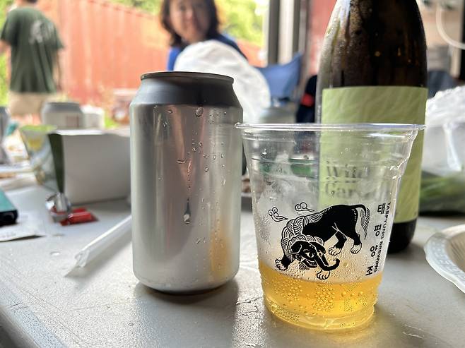 | ▲ 라벨이 없는 맥주들. 캠핑의 주인공이다. |