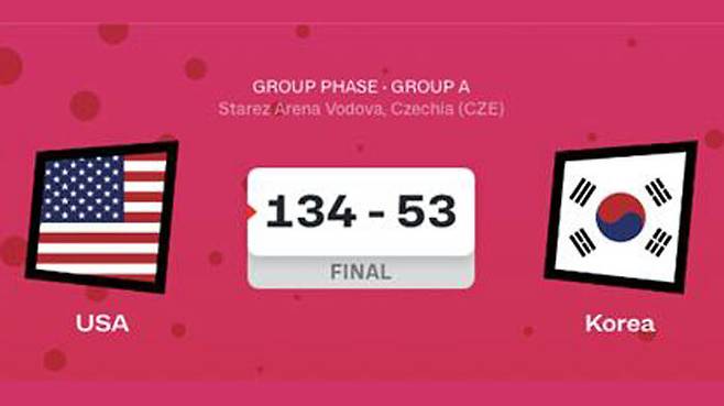 강병수 감독이 지휘하는 한국은 체코 브르노에서 열린 대회 조별리그 A조 1차전에서 미국에 134대 53으로 졌습니다.