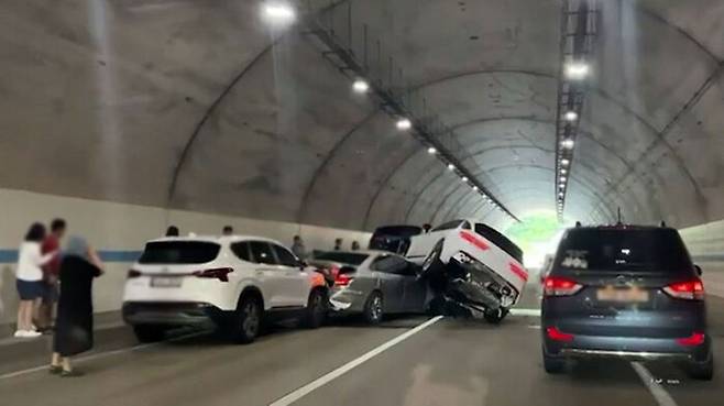 고속도로 터널서 차량 6대 연쇄 추돌…정체 구간서 '쾅'