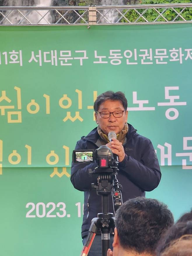 | ▲ 2023년 10월 24일 서대문노동자센터노동인권문화제시 참석자에게 인사말 하고 있는 박주동 |