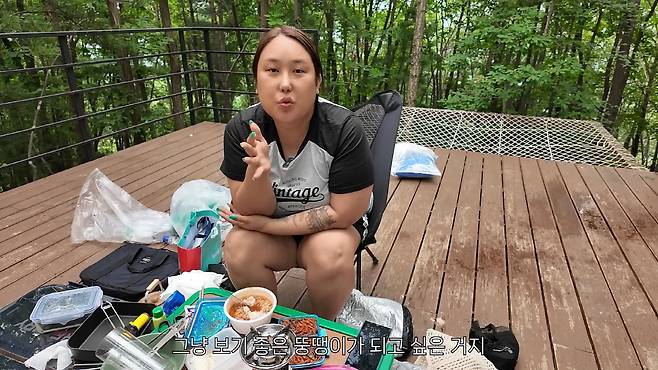 이어 캠핑장에서 설치된 해먹을 보고 "해먹에서 쓸 베개하고 이런 걸 따로 주시더라. 펼쳐서 한숨 자고 놀고 하면 될 것 같다"고 설명했다.