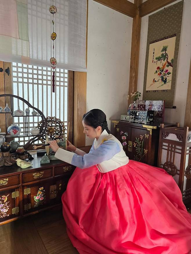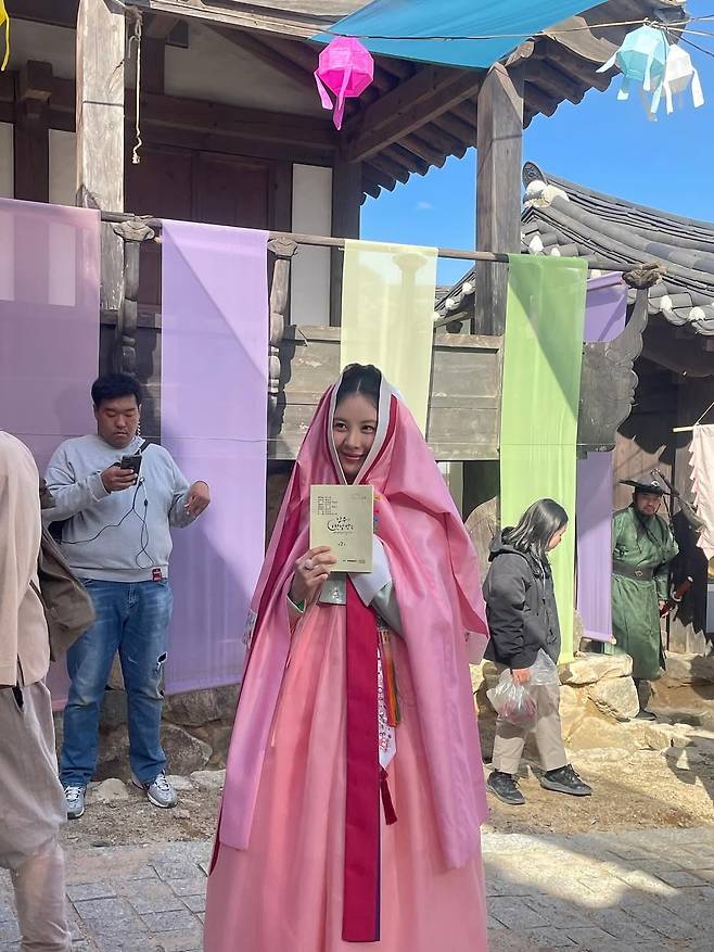 이어진 사진에서는 손에 대본을 든 채 장난기 가득한 미소를 짓는가 하면 작은 장구를 다루며 고전미를 자아내는 장면까지 담겼다. 마치 영화 속 장면 같은 분위기와 디테일한 한복 연출은 보는 이의 시선을 단숨에 사로잡는다.